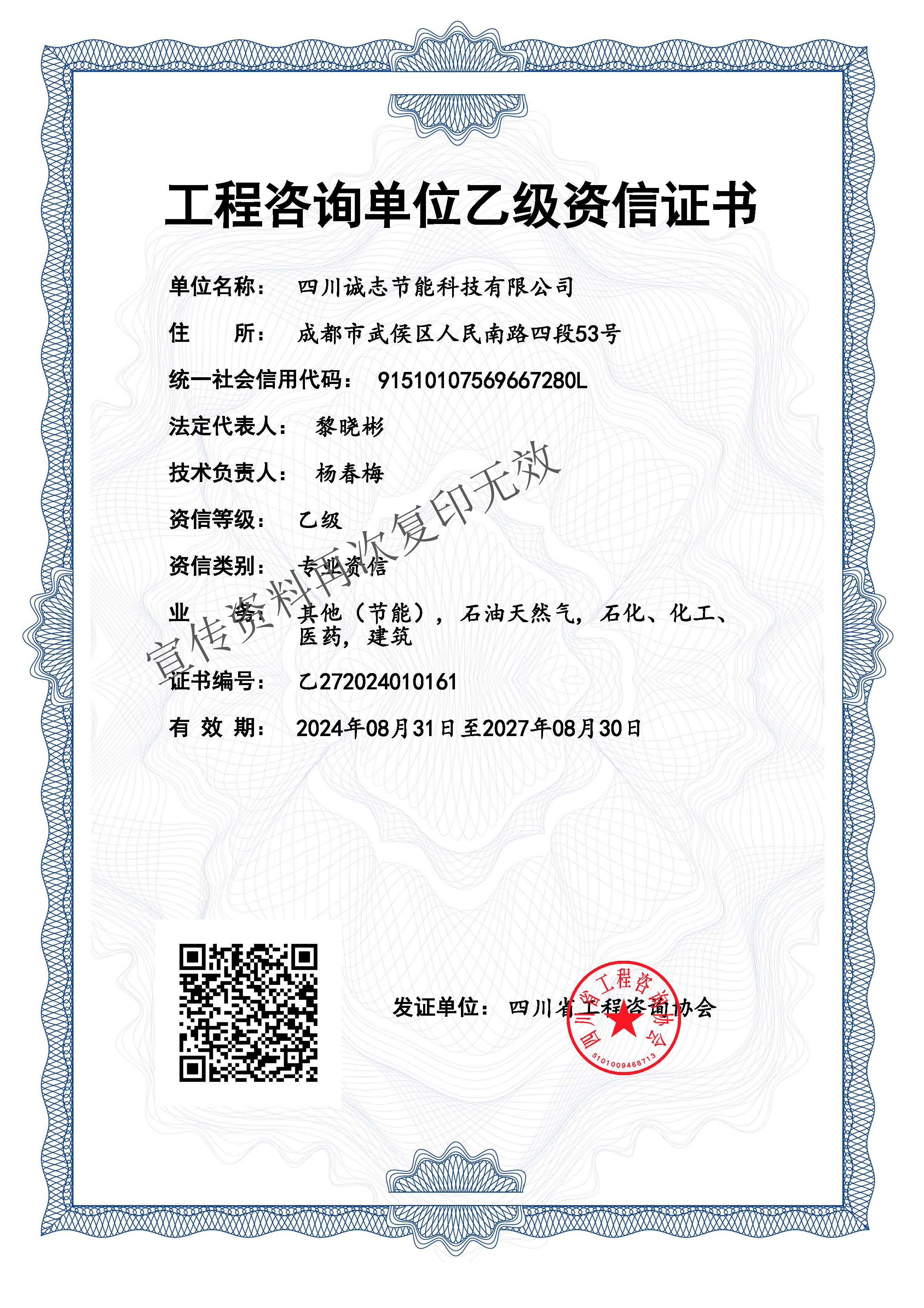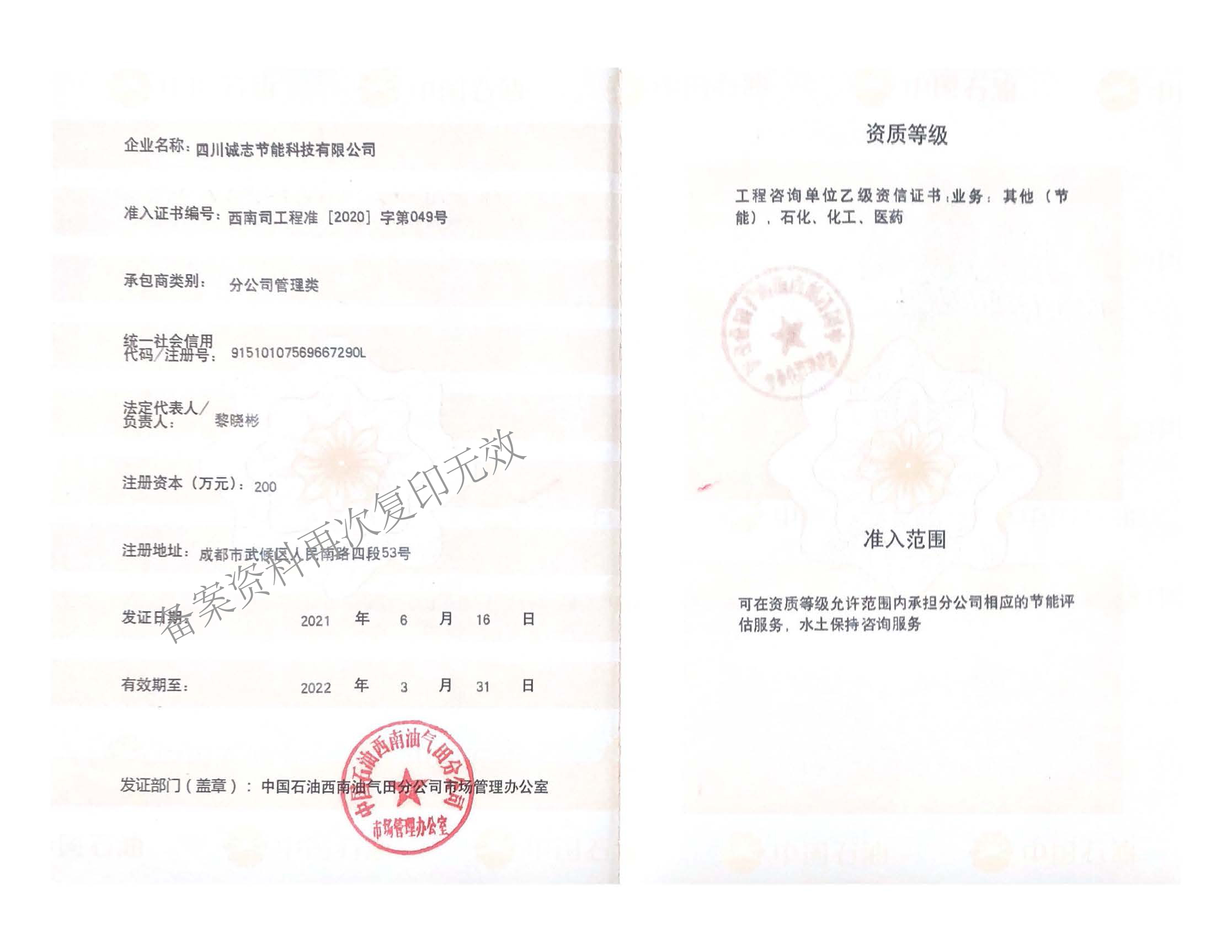 四川誠志節能科技有限公司(以下簡稱我公司)成立于2011年2月,是由多年從事技術咨詢服務行業的自然人發起,依托其近20年的咨詢行業經驗及其市場和人力資源優勢,組建成立的具備獨立法人資格的技術咨詢服務公司。我公司為四川省省級能源審計機構資格(2012年第一批,2016年四川省經信委推薦能源審計機構【川經信辦環資〔2016〕10號】),并取得含有節能專業的工程咨詢單位咨信資質,為四川省工程咨詢協會會員單位,中國水土保持學會會員單位,為高新技術企業。我公司通過了質量管理體系(ISO9001)、環境管...